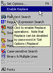 Replace is not enabled, the Replace button and edit box do not appear.