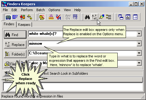 on the “Replace” button to start a Replace operation.